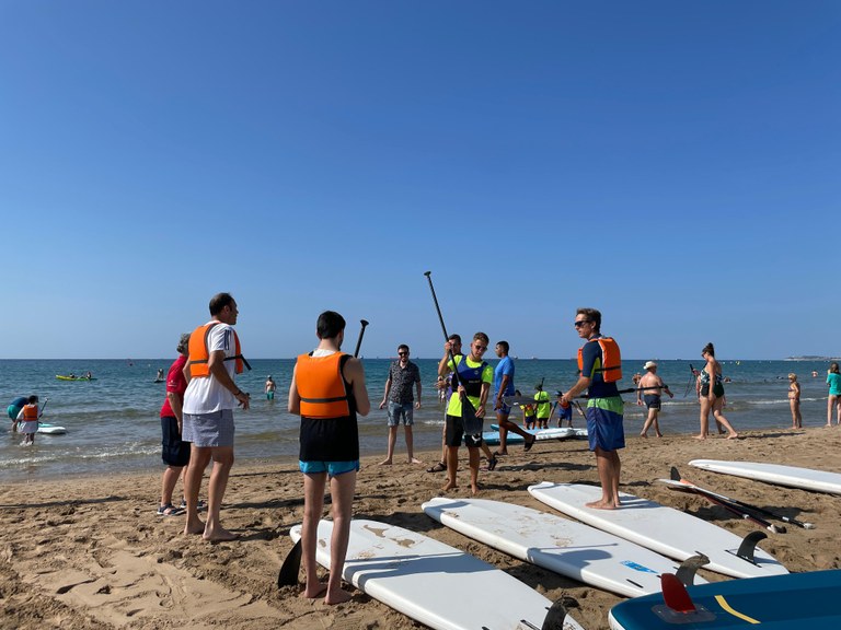 La quarta edició d’Onades Inclusives ha tornat a omplir la platja Llarga d’esport inclusiu aquest dissabte al matí. Gràcies a aquesta iniciativa impulsada per l’associació Si jo puc, tu també #epilep, una seixantena de persones amb discapacitat i sense han gaudit aquest dissabte al matí de sessions de pàdel surf i caiac inclusiu. L'activitat ha comptat, un any més, amb la col·laboració de Tarragona Esports, el Club de Vela Platja llarga, i els voluntaris del Consell Esportiu del Tarragonès.