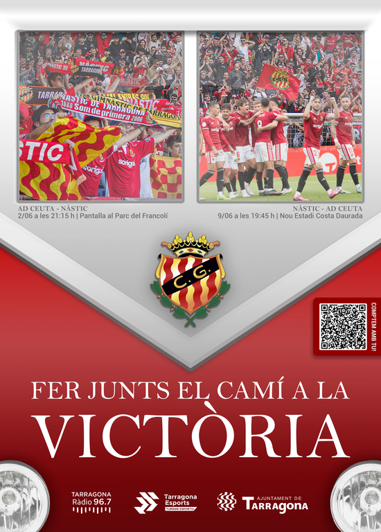 El partit de la AD Ceuta FC i el Nàstic, que es disputarà aquest diumenge 2 de juny a partir de les 21.15 h, es podrà seguir en directe a través de la pantalla gegant que l'Ajuntament de Tarragona instal·larà a la zona de les grades del Parc del Francolí. Es tracta de l'espai Nàstic, una iniciativa de Tarragona Esports, Tarragona Ràdio i el Gimnàstic de Tarragona que oferirà activitats familiars des de les 17 h del mateix diumenge i que té l'objectiu d'animar a l'equip en els partits que es disputaran fora de casa durant el playoff d'ascens a Segona Divisió.