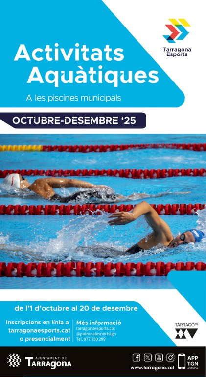 - Per les activitats aquàtiques dirigides es realitzaran mitjançant sorteig i amb inscripció presencial o virtual a través de https://esports.tarragona.cat.