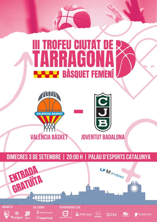 La III edició del Trofeu Ciutat de Tarragona arriba el pròxim dia 3 de setembre al Palau d’Esports, on s’enfrontaran el València Basket i al Joventut de Badalona. L'esdeveniment, coorganitzat per Tarragona Esports i el Club Bàsquet Tarragona, es obert a tota la ciutadania de forma gratuïta. El conseller d’Esports, Mario Soler ha destacat que “aquest partit confirma la consolidació del Trofeu Ciutat de Tarragona com una cita de primer nivell, capaç d’atreure equips punters com el Valencia Bàsket i el Joventut de Badalona. És una gran notícia per a l’esport femení i per a la ciutat”.