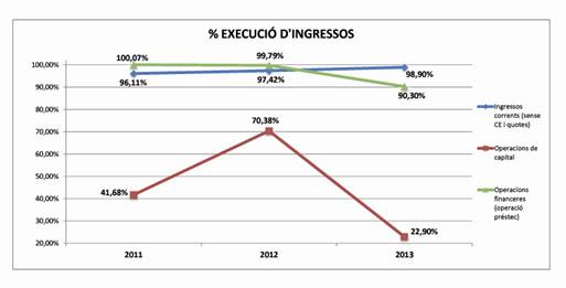 Execució pressupost ingressos: Relació entre el pressupost d'ingressos i els drets reconeguts nets |