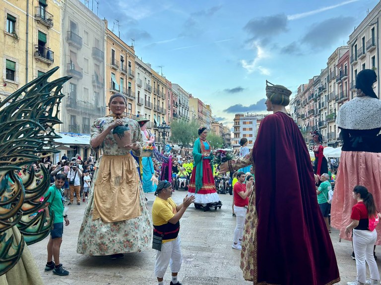 Poc abans de la ballda conjunta final, s’ha estrenat el nou ball de la geganta Frida i s’ha pogut escoltar per primer cop la composició musical que s’ha creat especialment per a ella. L’acte ha comptat amb la participació de l’alcalde de Tarragona, Rubén Viñuales, i la conselleria de Diversitat Funcional i Discapacitat, Cecilia Mangini, entre altres consellers i conselleres municipals.