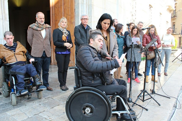 Aquest matí representants de les entitats del Consell Municipal de la Discapacitat que treballen amb persones de capacitats extraordinàries han llegit el manifest 'Sense por' per commemorar el Dia Internacional de les Persones amb Discapacitat. L'acte ha tingut lloc a les 12 h a les escales del Palau Municipal.