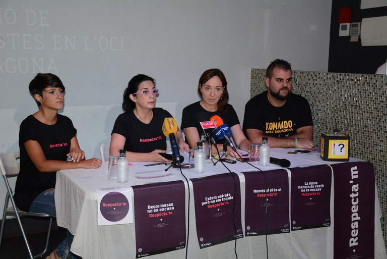 L'Ajuntament de Tarragona dóna aquest cap de setmana el tret de sortida a 'Respecta'm', una campanya de prevenció de conductes sexistes en l'oci de la ciutat, especialment en contextos festius i nocturns. La presentació de la campanya ha tingut lloc aquest dimecres 20 d'agost en presència de la consellera de Serveis a la Persona, Ana Santos, la consellera de Festes, Begoña Floria i representants del Komando Nits Q, un grup de joves agents de salut que protagonitzaran algunes de les accions de la campanya.