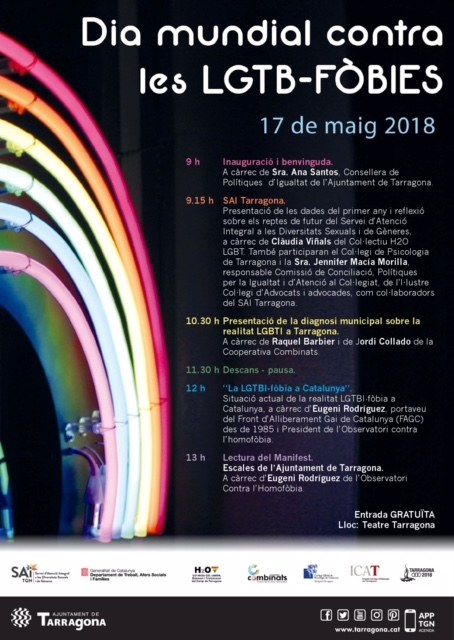 La conselleria de Polítiques d'Igualtat de l'Ajuntament de Tarragona ha organitzat una sèrie d'actes amb motiu de la commemoració, el 17 de maig, del dia mundial contra les LGTB-FÒBIES.