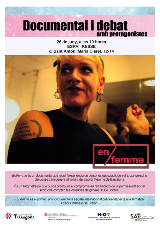 D’altra banda, avui dimarts a les 19 hores, a l’Espai Kesse, es presentarà el documental En Femme, que busca promoure el compromís en l’eradicació de la permissivitat social amb què compten les violències de gènere i la LGTBIfòbia.