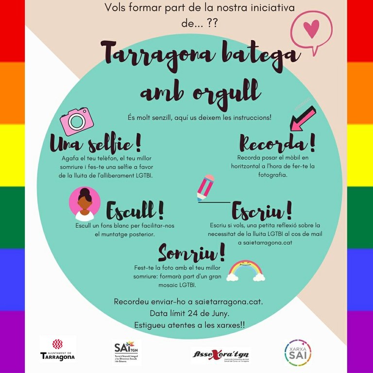 El 28 de juny és el Dia Internacional de l'Orgull LGTBIQ i per commemorar aquesta jornada el Servei d'Atenció Integral a les Diversitats Sexuals i de Gènere (SAI) de la Conselleria de Feminismes i LGTBIQ de l’Ajuntament de Tarragona ha organitzat actes de reivindicació adaptats a la situació de la Covid-19.