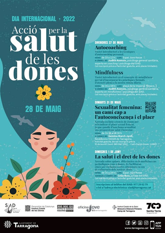 Un any més, la Conselleria de Feminismes i LGTBIQ+ de l’Ajuntament de Tarragona programa diferents activitats al voltant del dissabte 28 de maig, Dia Internacional d’Acció per a la Salut de les Dones, una diada que se celebra des del 1987 per reafirmar el dret de les dones a la salut, difondre les seves necessitats i demandes i reclamar una resposta a les administracions.