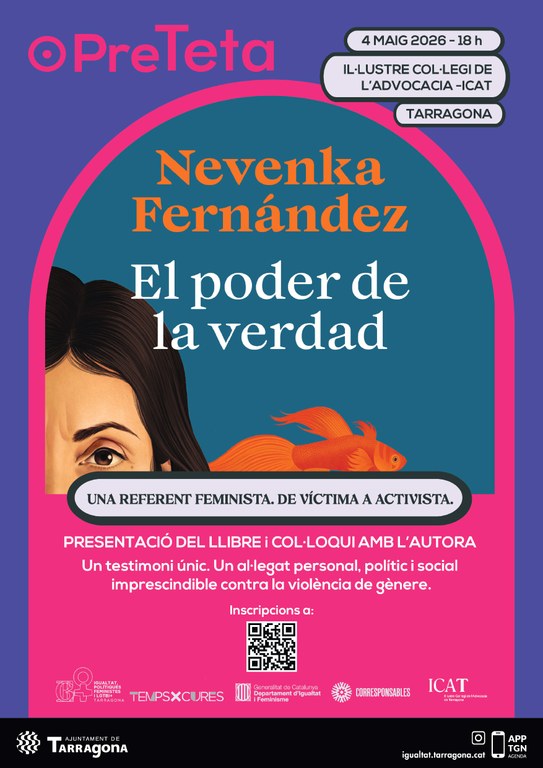 El pròxim 4 de maig, a les 18 h, l’Il·lustre Col·legi de l’Advocacia de Tarragona (ICAT) acollirà la presentació del llibre El poder de la verdad, de Nevenka Fernández, una de les veus més rellevants del feminisme a l’Estat espanyol. L’acte forma part de la programació del PreTETA, l’espai previ al Festival TETA dedicat al pensament crític, la denúncia de les violències masclistes i la promoció de la igualtat. Nevenka Fernández es va convertir en una figura pública per ser la primera dona a aconseguir una sentència condemnatòria per assetjament sexual en l'àmbit laboral contra un polític, convertint el cas que porta el seu nom en una fita històrica de la lluita contra la violència de gènere a Espanya.