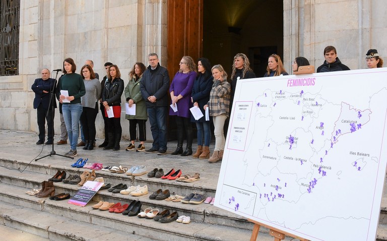 Com a acció reivindicativa, moltes persones han donat suport als actes relacionats amb el Dia Internacional per a l’Eliminació de la Violència contra les Dones, deixant a les escales de l’Ajuntament i també als centres cívics les seves sabates. Les sabates simbolitzen la base, el ciment, l’objecte que ajuda a plantar-nos ferms a terra.
