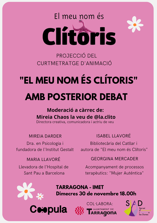 Demà, dimecres 30 de novembre, tindrà lloc la presentació del llibre i curtmetratge El meu nom és Clítoris, a càrrec de la seva autora, Isabel Llavoré. L’acte, que se celebrarà a l’Institut Municipal d’Educació de Tarragona (IMET) a partir de les 18 h, comptarà amb un col·loqui posterior amb la participació de diverses expertes. El debat el moderarà la directora creativa, comunicadora i actriu de veu Mireia Chaos.