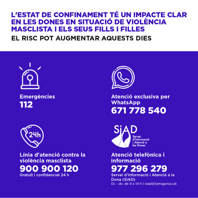 09/04/2020 - S'ha habilitat un nou servei de missatgeria instantània per WhatsApp i s'ha engegat la campanya "Establiment segur contra la violència masclista"