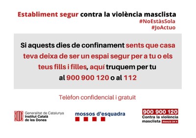 02/04/2020 - L’Institut Català de les Dones i Mossos d’Esquadra demanen als establiments que s’adhereixin a la iniciativa