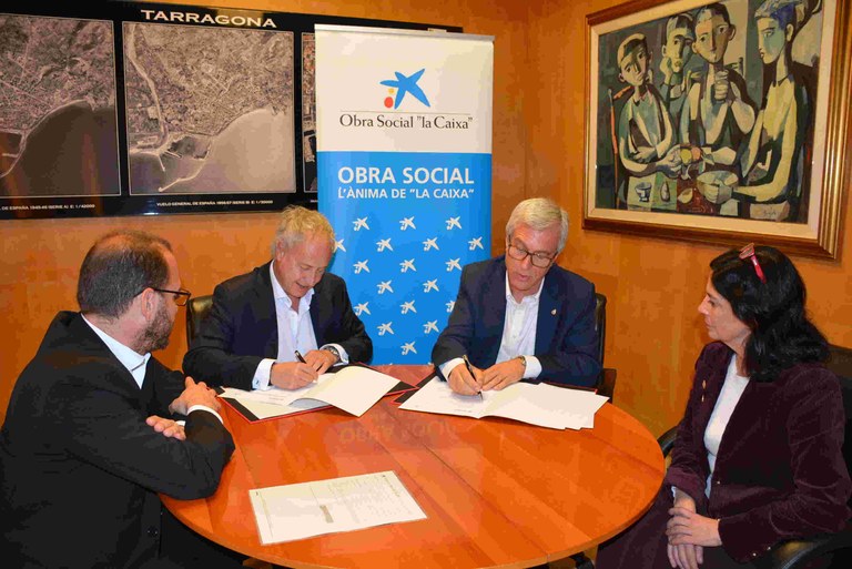 L’alcalde de Tarragona, Josep Fèlix Ballesteros, i el director de Banca d’Institucions de CaixaBank a Catalunya, Joaquim Macià, han signat un conveni de col·laboració per impulsar programes socials a la ciutat.