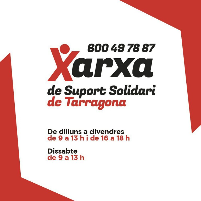 A partir d’aquest dilluns 18 de maig, la Xarxa de Suport Solidari de l’Ajuntament de Tarragona modifica l’horari d’atenció al públic del seu telèfon 600 497 887, que serà el següent: