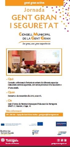 Durant el matí hi intervindran: l’advocada Pilar Palau presentarà les claus per evitar una estafa, l’Oficina de Relacions amb la Comunitat dels Mossos d’Esquadra oferirà una xerrada sobre “Mesures de Seguretat quotidianes”, Joaquim Millàn – Eurolocal “La seguretat que ens dóna ser ciutadans d’Europa” i Lluís Mangrané coordinador dels voluntaris de Protecció Civil de Tarragona parlarà sobre la prevenció d’accidents.