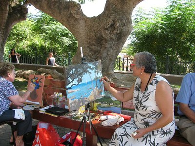 17/08/2012 - Usuaris dels grups de pintura de Gent Gran Activa fan una mostra de l'activitat del taller en el passeig de Les Palmeres.