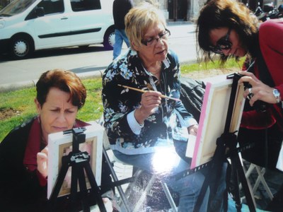 26/04/2012 - Aprofitant el bon temps els tallers de pintura que habitualment es fan a les llars surten al carrer.