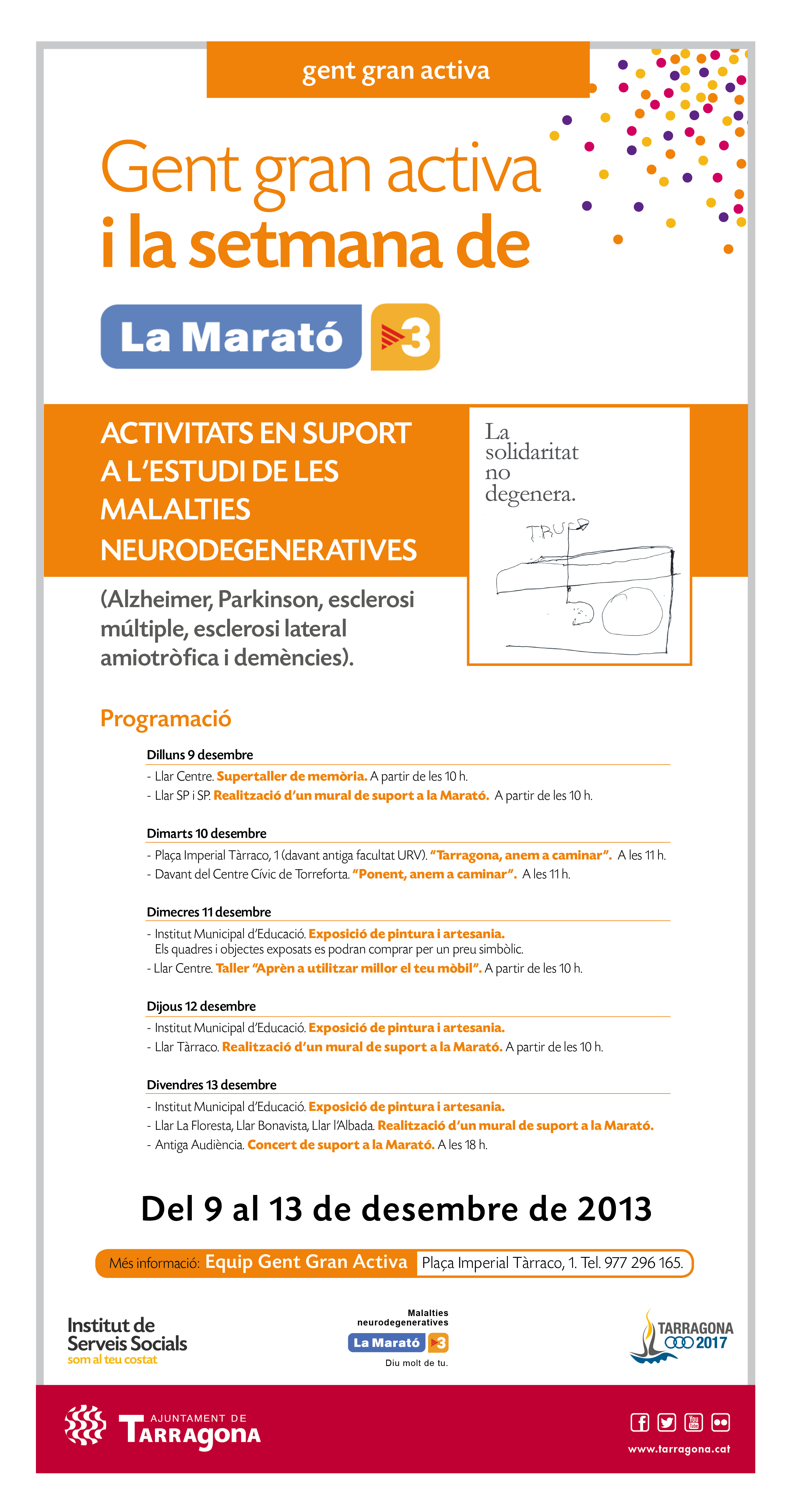 Programa de la setmana del 9 al 13 de desembre de 2013 en suport a l'estudi de les malalties neurodegeneratives