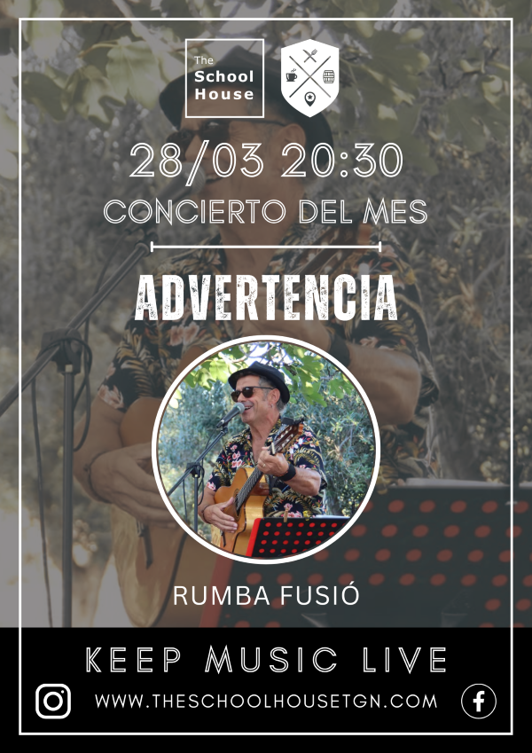 Aquest mes, l'escenari serà conquistat pel grup Advertencia, que ens deleitarà amb el seu estil de rumba i un repertori ple d'energia, passió i grans clàssics.