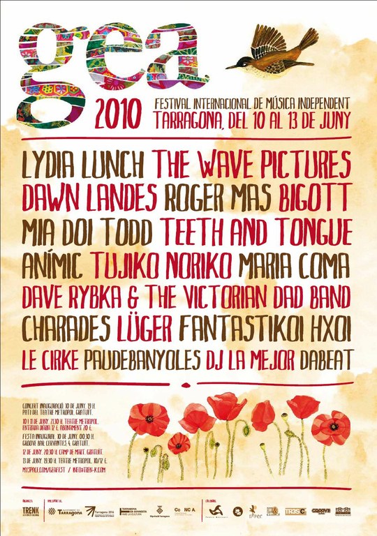 Aquest dijous 10 de juny engega la segona edició de Gea, el Festival de Música Independent de Tarragona, que se celebrarà fins al 13 de juny. Hi prendran part 18 artistes procedents dels Estats Units, el Regne Unit, Japó, Austràlia i Grècia, així com de Catalunya i de la resta de l’Estat. Les principals novetats d’enguany seran un dia més de concerts (diumenge); el canvi d’espai a l’aire lliure, del Parc Francolí al Camp de Mart; i que cada nit tindrà un clar cap de cartell.