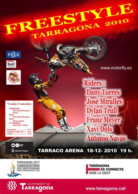 Per primer any, la ciutat de Tarragona ha apostat per l'esport més espectacular del món de la moto i acollirà la celebració del Freestyle Tarragona 2010. És farà a la Tarraco Arena Plaça el dissabte dia 18 a les 19 h i comptarà amb la presència dels pilots Dani Torres i Jose Miralles. L’espectacle està organitzat per la Conselleria d’Esports. El conseller Jose Cosano ha explicat que “volem que la ciutat sigui un punt de referència esportiu a Catalunya i ja ho estem aconseguint. Després de l’èxit d’organització i participació del Trial indoor ara organitzem aquest esport espectacular i també esperem que sigui tot un èxit”.