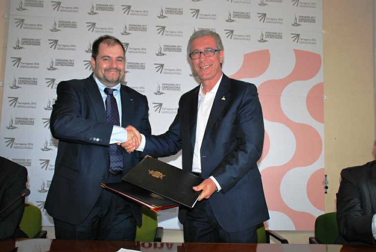 L’alcalde de Tarragona, Josep Fèlix Ballesteros, i el director de la Conferència Europea de la Junior Chamber International (JCI) 2011, Josep M. Plassa, han signat avui el conveni marc de col·laboració entre l’Ajuntament i la Jove Cambra de Catalunya per la celebració de la JCI European Conference 2011 a Tarragona.