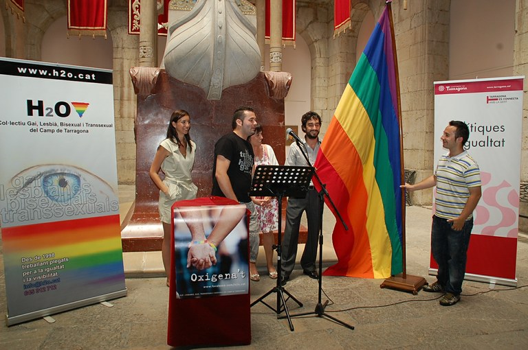 Amb motiu de la celebració del Dia Internacional de l'Orgull LGTB (lesbià, gay, bisexual y transexual), aquest dimarts 28 de juny s'ha dut a terme un acte de plantada de bandera i lectura d'un manifest per part del col·lectiu H2O.