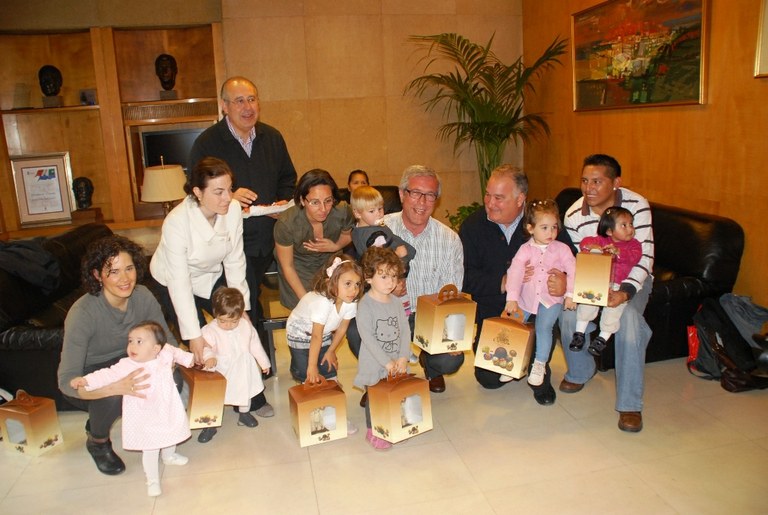 L'Alcalde ha entregat les mones de Pasqua a les nenes que es diuen Tecla de la ciutat. Aquest any han passat a recollir la mona 9 nenes, una més que l’any passat, ja que s’ha incorporat al grup la Ivet Tecla de 7 mesos.