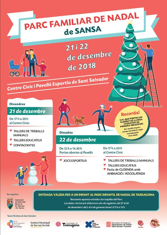 Per participar al Parc cal portar un aliment de llarga caducitat i primera necessitat que es destinarà a Càritas del barri de Sant Salvador.