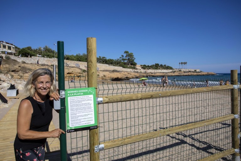 S’ha adequat la rampa d’accés actual a les noves necessitats; s’ha instal·lat una passera de fusta per facilitar l’accés a persones amb mobilitat reduïda; s’ha col·locat una tanca perimetral amb portes integrades, així com un espai de dutxes per a persones i gossos i la seva prèvia instal·lació de xarxa d’aigua i finalment, un banc i papereres. La senyalització explica el bon ús de l’espai i les normes a seguir.