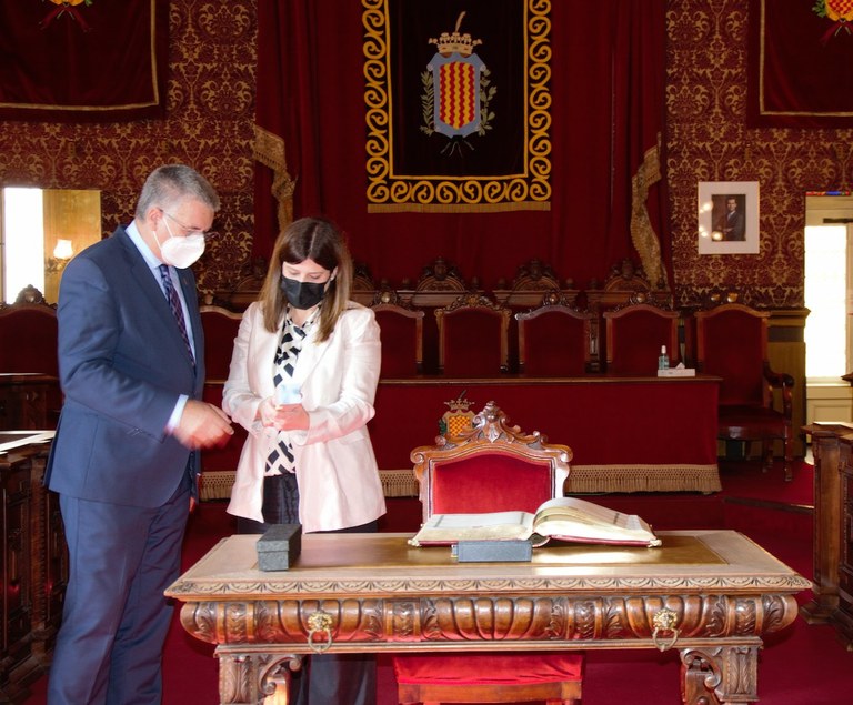 Aquest matí l'alcalde de Tarragona, Pau Ricomà, ha rebut la consellera de Recerca i Universitats de la Generalitat de Catalunya, Gemma Geis. La consellera ha signat el Llibre d'Honor al Saló de Plens, acompanyada també d'altres regidors de l'Ajuntament i representants de la Generalitat de Catalunya.