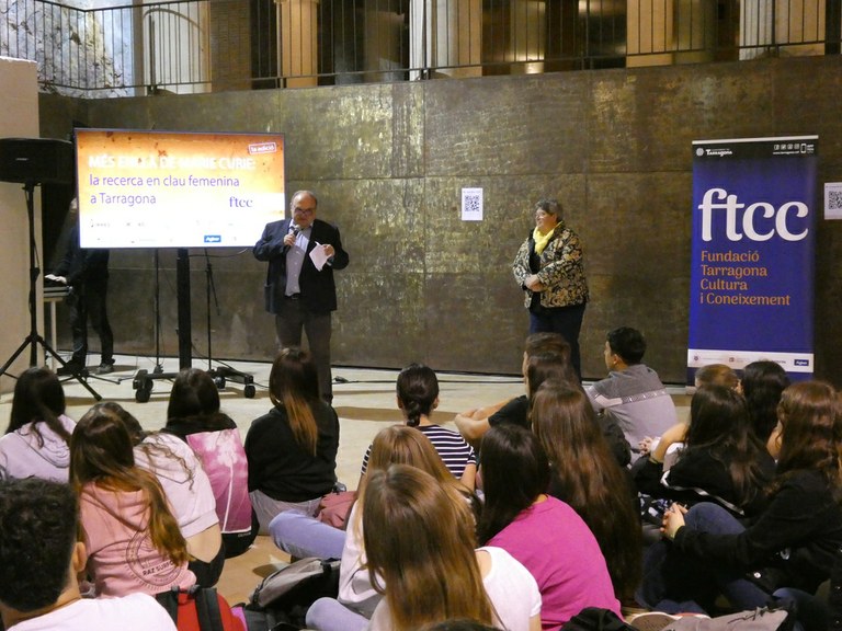Aquest matí s’ha celebrat la jornada ‘Més enllà de Marie Curie’ sobre recerca en clau femenina a Tarragona, una iniciativa de la Fundació Tarragona Cultura i Coneixement amb la col·laboració de la Fundació Catalunya La Pedrera que busca promoure el paper de la dona a la ciència a la ciutat. Han participat a la jornada una setantena d’alumnes de 4t d’ESO de l’institut Tarragona i de 1r de batxillerat de La Salle Tarragona.
