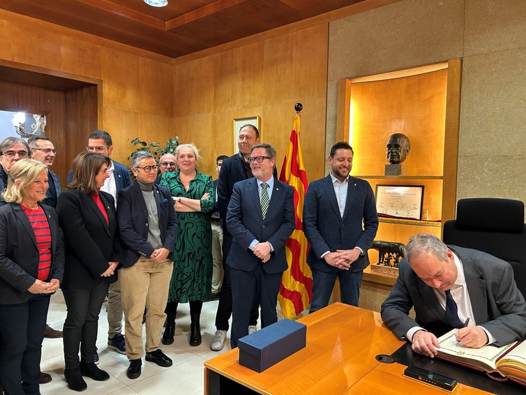 Jordi Hereu ha estat rebut per l'alcalde i la corporació municipal i ha signat en el Llibre d'Honor