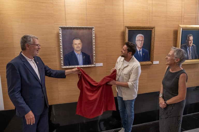 Viñuales ha destacat "la complicada època en què Ricomà va ocupar l'alcaldia (2019-2023) amb la pandèmia" mentre que l'exalcalde, acompanyat d'amics i familiars, ha fet un repàs dels seus anys a l'Ajuntament i ha recordat que, com alcalde, ell també va tenir "l'honor de penjar el retrat de l'exalcalde Josep Fèlix Ballesteros en aquesta galeria".