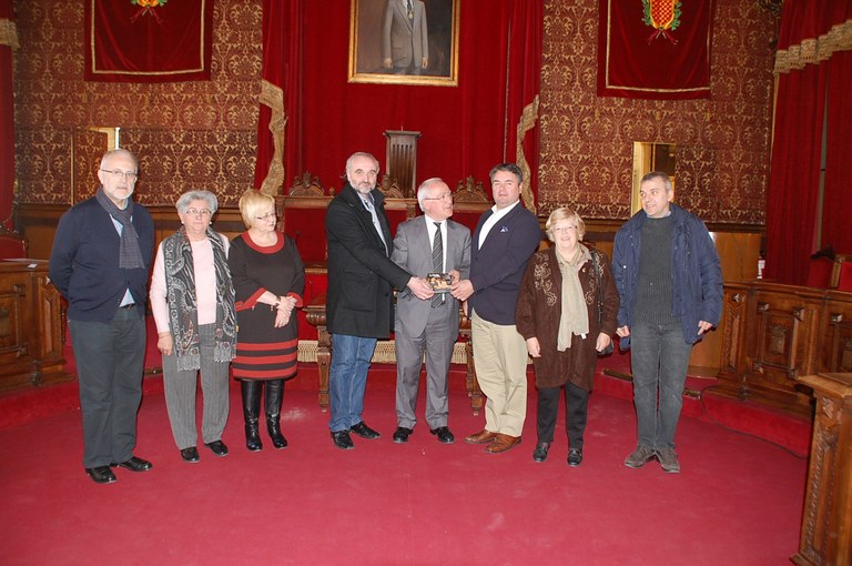 A la fotografia, el regidor de Relacions Ciutadanes Francisco Zapater, flanquejat per el president de la Passió d’Ulldecona Jeroni Castell i Pablo Arias, president de la “Federació de Cases Regionals”. També hi apareix Conxita Sauné, secretaria de la Federació de Centres Regionals, Fina Salvatella, regidora de Cultura d’ Ulldecona i Jaume Coll de la Passió d’Ulldecona.