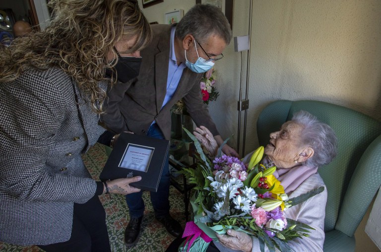 Aquest dissabte al matí l'alcalde de Tarragona, Pau Ricomà, acompanyat de la consellera María José Lopez; han visitat la tarragonina Benita Berga Abella amb motiu del seu centè aniversari i li ha fet entrega d'un ram de flors i un diploma.