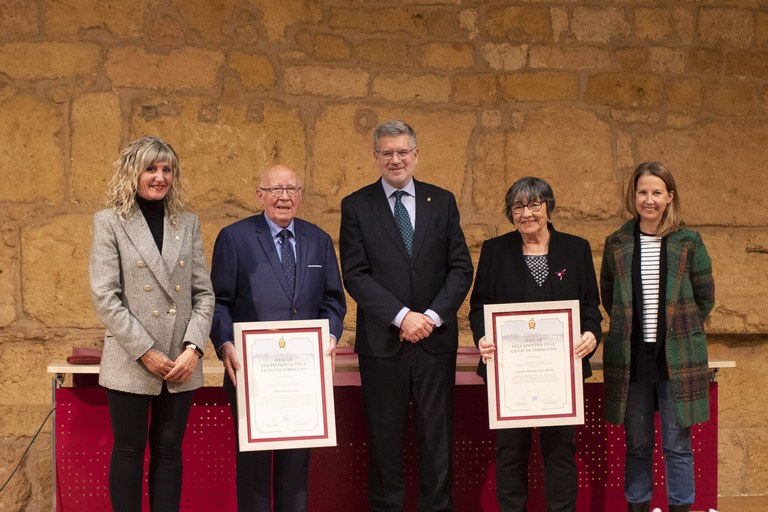 L’Ajuntament de Tarragona ha entregat aquesta tarda les distincions de títol de filla adoptiva i de títol de fill predilecte de la ciutat als tarragonins Maruja Aragoncillo i Josep Ferré respectivament.