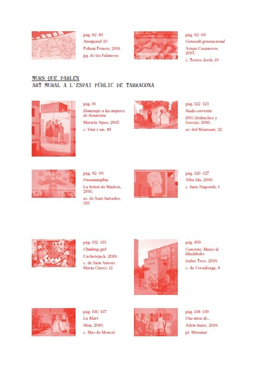 Gairebé quinze anys després, Tarragona disposa d’un catàleg artístic a l’aire lliure d’alt nivell, amb artistes reconeguts internacionalment, i sovint, amb treballs col·lectius que ja formen part de la identitat del barri. El llibre reuneix una panoràmica històrica sobre l’art mural als carrers de Tarragona, així com diversos textos que conviden a la reflexió sobre les relacions entre el grafitti i el muralisme amb el patrimoni històric, les institucions públiques o el teixit veïnal.