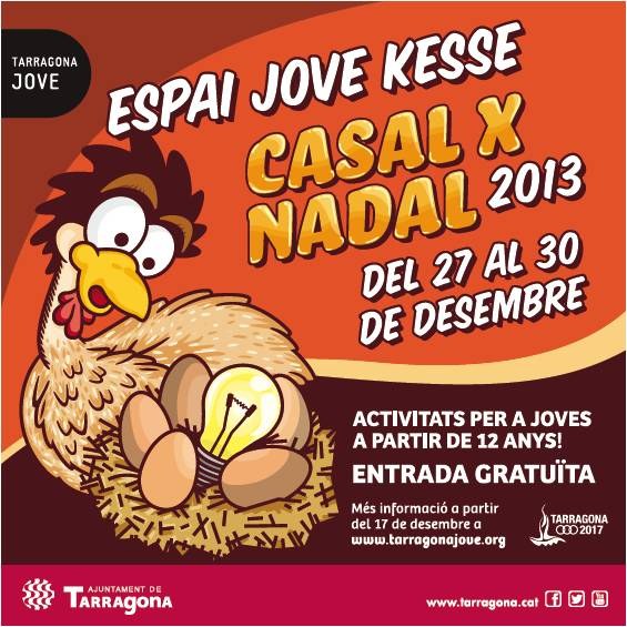 Aquest Nadal se celebra a Tarragona la tercera edició del cicle d’activitats formatives, lúdiques i esportives per a adolescents i joves a l’Espai Jove Kesse (Sant Antoni Maria Claret 12-14).