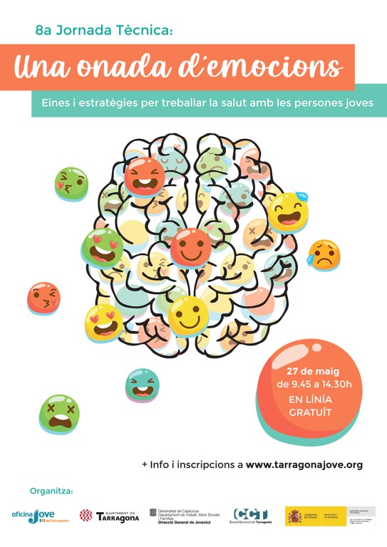 Aquest dijous 27 de maig de 9.45 a 14.30h se celebrarà, en línia, la 8a Jornada Tècnica de Salut Jove, organitzada per l’Oficina Jove del Tarragonès i dirigida a professionals que treballen en l’àmbit de la joventut. Sota el títol UNA ONADA D’EMOCIONS. Eines i estratègies per a treballar la salut amb joves, la jornada d’enguany pretén dotar d’eines i estratègies per acompanyar en la salut emocional dels joves a aquells professionals que treballen amb joventut en el seu dia a dia.