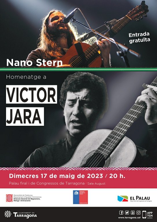 Tarragona ret el dimecres 17 de maig homenatge a Víctor Jara en el 50è aniversari del seu assassinat amb un concert del cantautor xilè Nano Stern. L’espectacle, gratuït i d’entrada lliure, serà a la Sala August del Palau de Congressos a les 20 h.