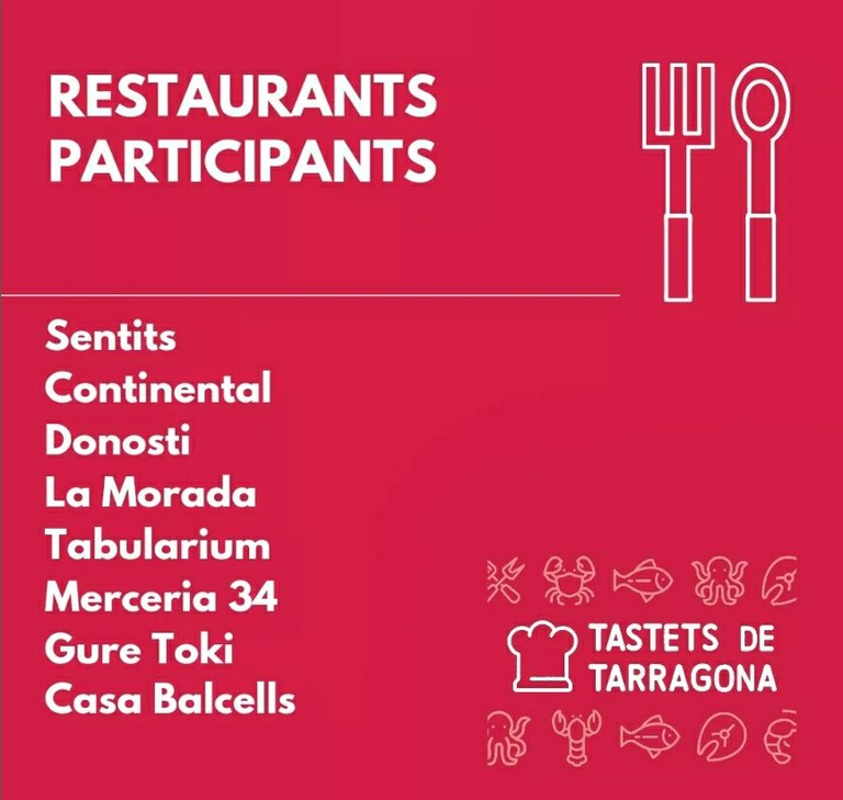 Avui dijous s'inicia els Tastets de Tarragona, una ruta gastronòmica organitzada per l’Associació d’Empresaris d’Hostaleria de Tarragona Ciutat i Raventós Codorniu amb la col·laboració del Patronat Municipal de Turisme. Amb l'objectiu de dinamitzar i potenciar la gastronomia de la ciutat, vuit establiments tarragonins serviran platillos maridats amb vins i caves Raventós Codorniu a un preu de 6 € cada dijous a partir de les 19.30 h (horari condicionat per l'obertura de cada establiment).
