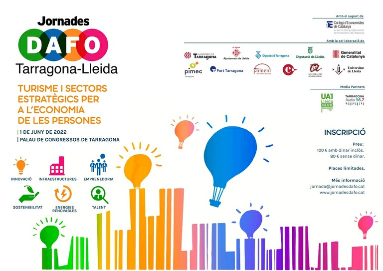 La jornada d’aquest dimecres a Tarragona porta per títol “Turisme i sectors estratègics per a l’economia de les persones” i tindrà lloc de 9 a 16 h al Palau Firal i de Congressos de Tarragona. Un dels eixos de la jornada serà el turisme —tant vacacional com de negocis— com a element dinamitzador del territori, però també tot allò que comporta el pool industrial de Tarragona, la zona portuària i les seves infraestructures.