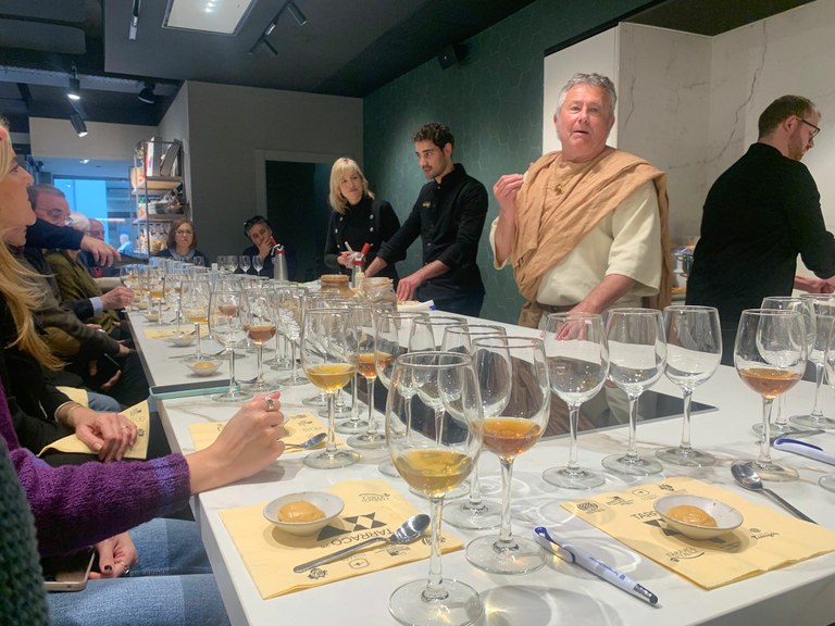 L’acció promocional ha consistit en un showcooking, a base de receptes recuperades de la gastronomia romana, i maridades amb vins del territori. Agustí Farré ha estat l'encarregat de realitzar un monòleg de reconstrucció històrica representant un comerciant de vi de l’època romana. Aquesta promoció es realitza dins el marc del XXV aniversari de Tarragona com a Patrimoni de la Humanitat. Per aquest motiu, la consellera va ser la responsable de presentar el patrimoni material i immaterial de la ciutat davant dels periodistes.