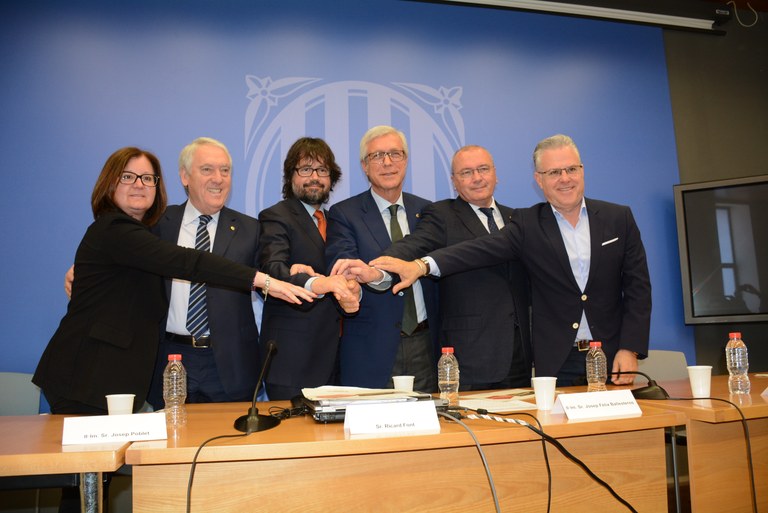 Els alcaldes de Tarragona, Josep Fèlix Ballesteros; Reus, Carles Pellicer; l'alcaldessa de Cambrils, Camí Mendoza; i els batlles de Salou, Pere Granados, i Vila-seca, Josep Poblet, juntament amb el secretari d'Infraestructures i Mobilitat, Ricard Font, han presentat avui el pacte territorial per impulsar les infraestructures estratègiques del Camp de Tarragona. Aquest 2018 està previst que entri en servei la doble via entre Vandellòs i Tarragona, fet que ha de permetre millorar els serveis ferroviaris actuals i impulsar noves infraestructures que dotin el territori de millor connectivitat amb els principals pols d'activitat econòmica.