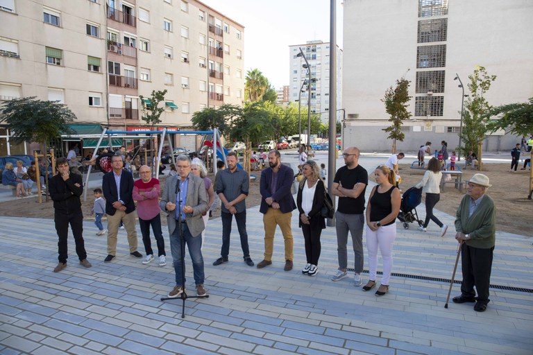 El conseller de Territori i Sostenibilitat de l’Ajuntament, Xavier Puig, ha destacat per la seva banda que amb la remodelació “la plaça esdevé un espai accessible, amb vegetació mediterrània, amb ombra i que pot tenir molts usos perquè té espais molt diferents on s’hi pot reunir tothom”. “Una plaça que vertebrarà la vida del barri, que és la funció que tenen les places”, ha afegit.