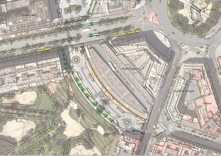 - Estació de RENFE: Disposaran de tres parades per a la càrrega i descàrrega de viatgers que no tinguin destí/origen Tarragona.