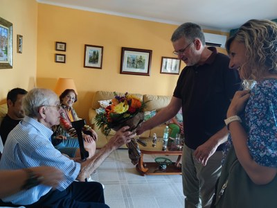 Els dos membres del Club Ciclista Campclar han sortit aquest dimecres de la plaça de la Font, on han rebut la bandera de Tarragona de mans de l’alcalde Ricomà