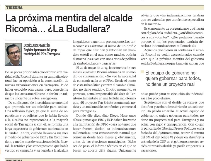 "La próxima mentira del alcalde Ricomà...¿La Budallera?